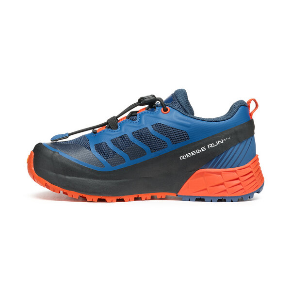 RIBELLE RUN KID е водоустойчива обувка за бягане по пътека, създадена специално за деца, благодарение на удобната си форма, лесно регулируема система за връзки и защитен TPU ранд, който идва от емблематичния дизайн на семейството Ribelle Run.