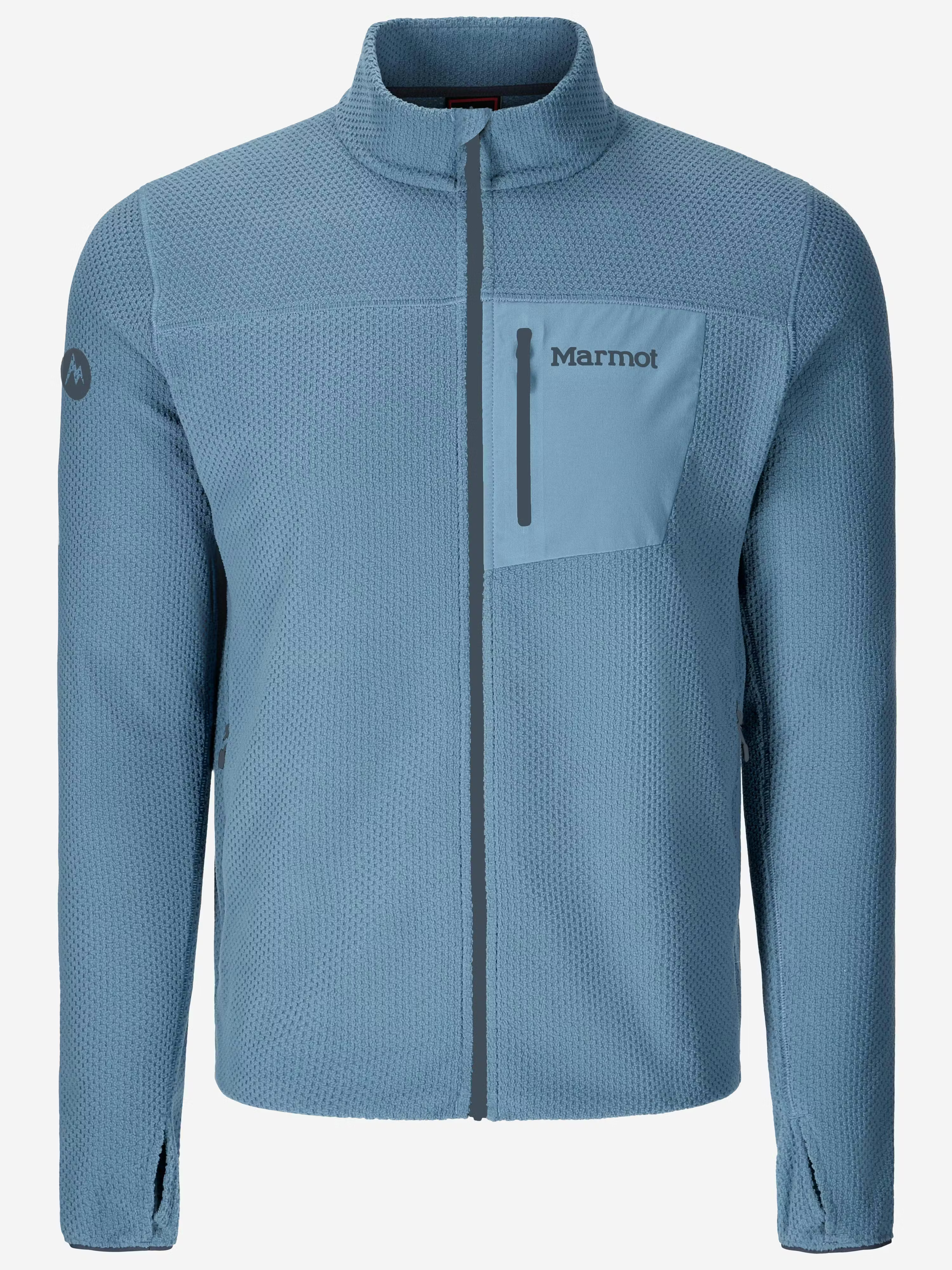 Marmot AirFleece Jacket е мъжко леко флийс яке с цял цип, създадено за туризъм, layering и активна употреба на открито. Изработено е от 100% рециклиран полиестерен жакардов полар с характерна checkerboard grid структура, която подобрява дишаемостта, задържа топлината и намалява обема, а slim fit кройката го прави отличен междинен слой под shell яке или раница.
